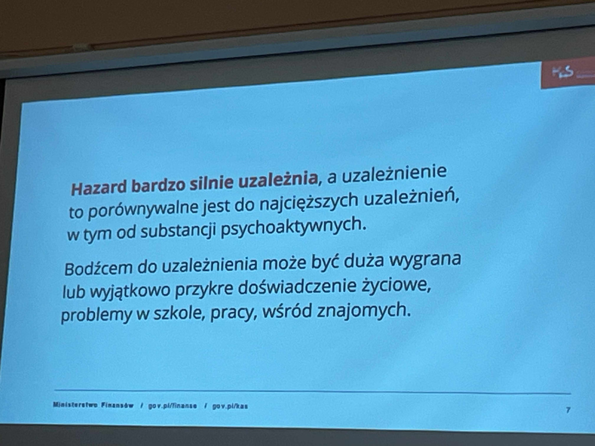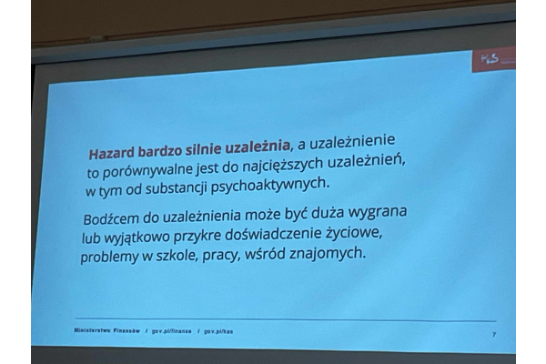 Celem spotkania było podniesienie świadomości na temat zagrożeń i konsekwencji związanych z hazardem oraz nauka, jak skutecznie unikać wciągnięcia w nałóg.